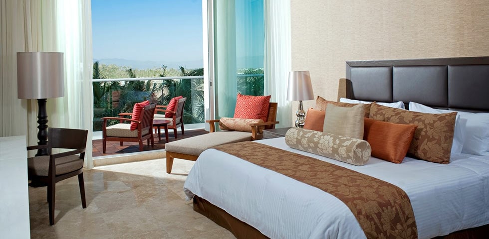 Recipient of the Five Diamond Award, Grand Luxxe at Vidanta Nuevo Vallarta offers one of the most exclusive and luxurious vacation experiences in Mexico. Situated along the eastern edge of the resort, five beautifully designed towers follow the Ameca River to where it meets the Bay of Banderas. This plush, modern resort is located on Mexico’s Pacific coast and faces a white sand beach lush, green jungle surroundings.